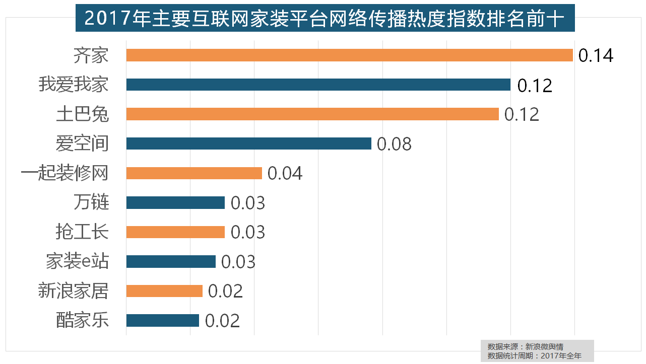 正在家拆次要关心点方面,我爱我家、土巴兔、爱空间、一路拆修网的收集热度指数排名前五。