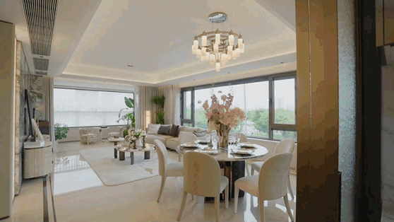 高奢颜值立面:建建立面采用纽约地方公园新古典气概,再加上客堂取阳台全面打通设想,